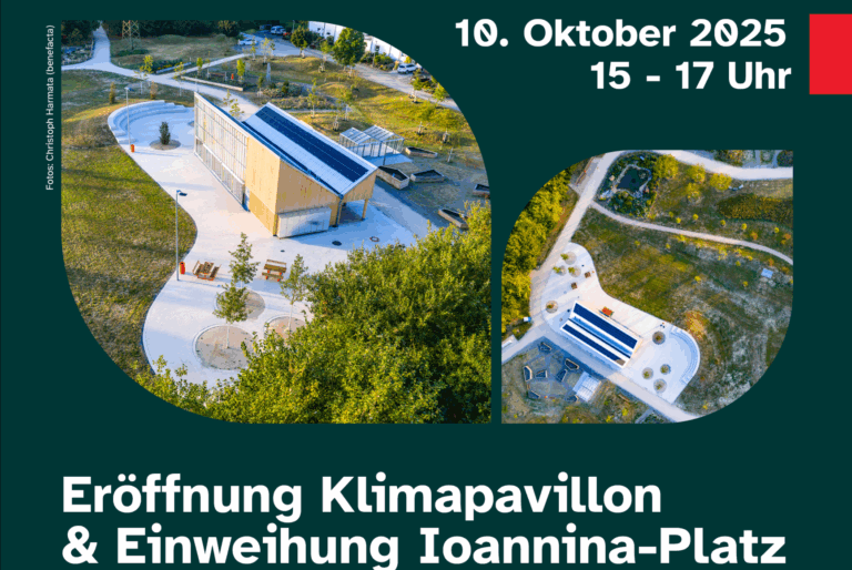 Drei Monate nach der Eröffnung des Klimagartens wird am Freitag, 10. Oktober 2025, von 15 bis 17 Uhr der Klimapavillon offiziell eröffnet und gleichzeitig der Ioannina-Platz eingeweiht. | 25.09.2025